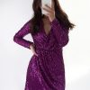 Avondjurk met een V halslijn en vlindermouwen